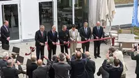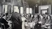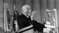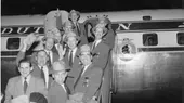 Um Punkt 11 Uhr traf auch der Bundespräsident der jungen Bundesrepublik, Theodor Heuss, an der Messe ein - und wurde stürmisch empfangen.