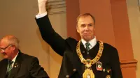 Hermann Wüstehoff, der Präsident des Niedersächsischen Sportschützenbundes, sagte bei der Enthüllung des Banners: